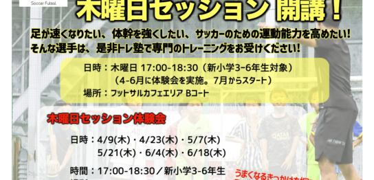 トレ塾2026 “木曜日セッション開講”のお知らせ